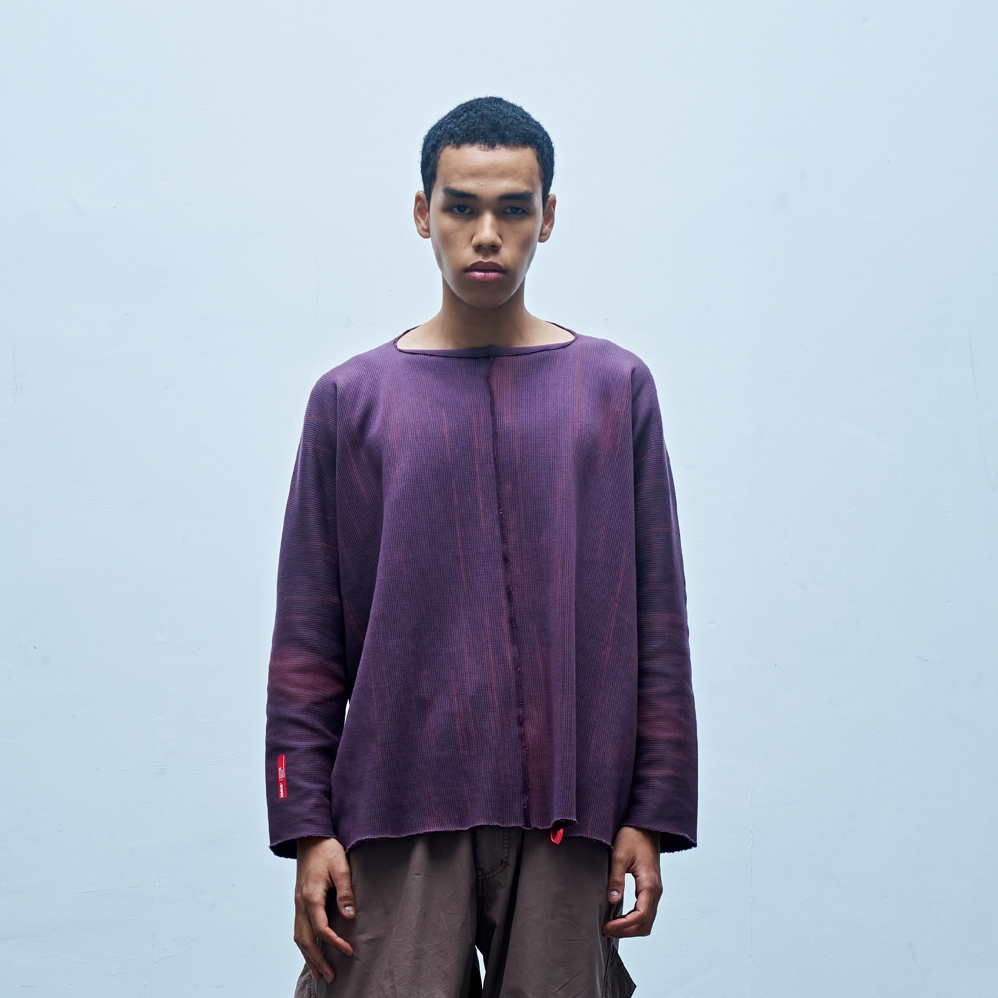 独自のパターンメイキングによって構築された、変形ロングスリーブTシャツ。