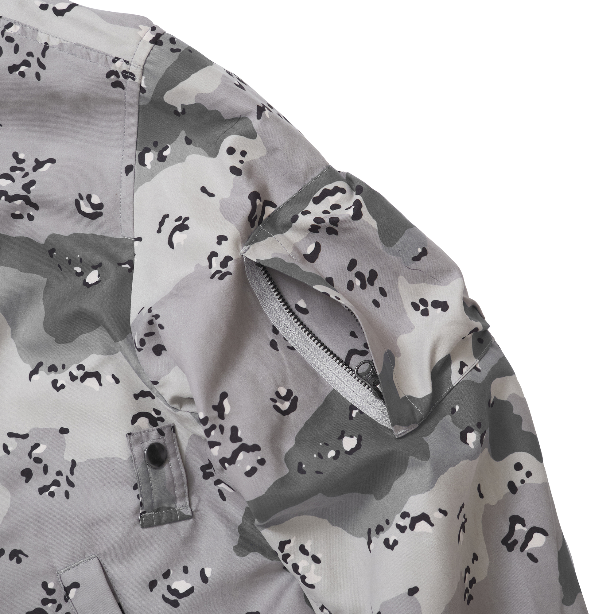 MA-1ツイルをピグメント加工でフェードさせたモデル、同素材の無加工ソリッドバージョンに加え、特筆すべきは90年代にサウジアラビア空軍が開発したグレーの6Cチョコチップカモを完全再現したプリントモデルや高級感を演出する肌触りの良いピーチスキンがラインナップ。