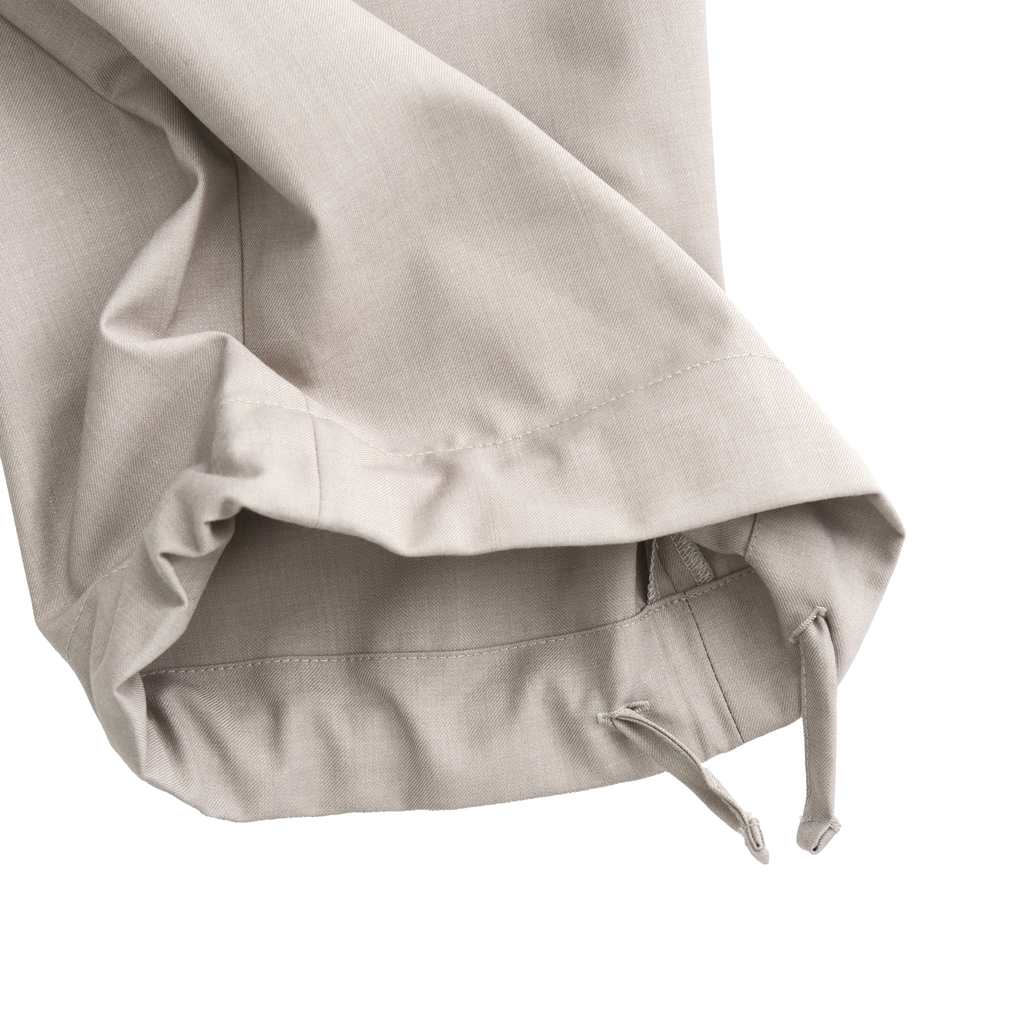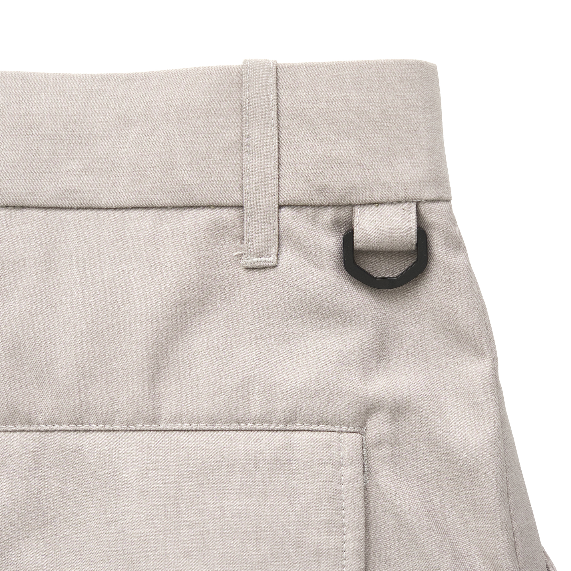 構造はミリタリー、縫製はあえてドレス仕様の番手・運針で仕立てることで、カジュアルな印象を抑え、洗練されたスラックスとして成立する設計に。